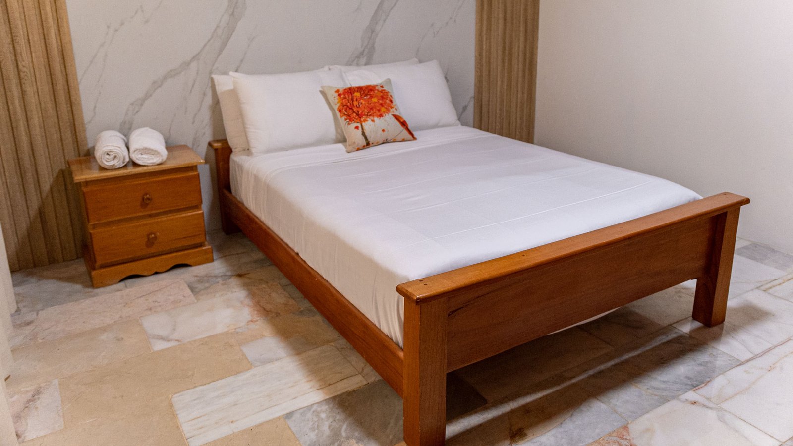 La habitación Garza se compone de un espacio sencillo pero perfectamente amueblado y con un baño completo privado en su interior.